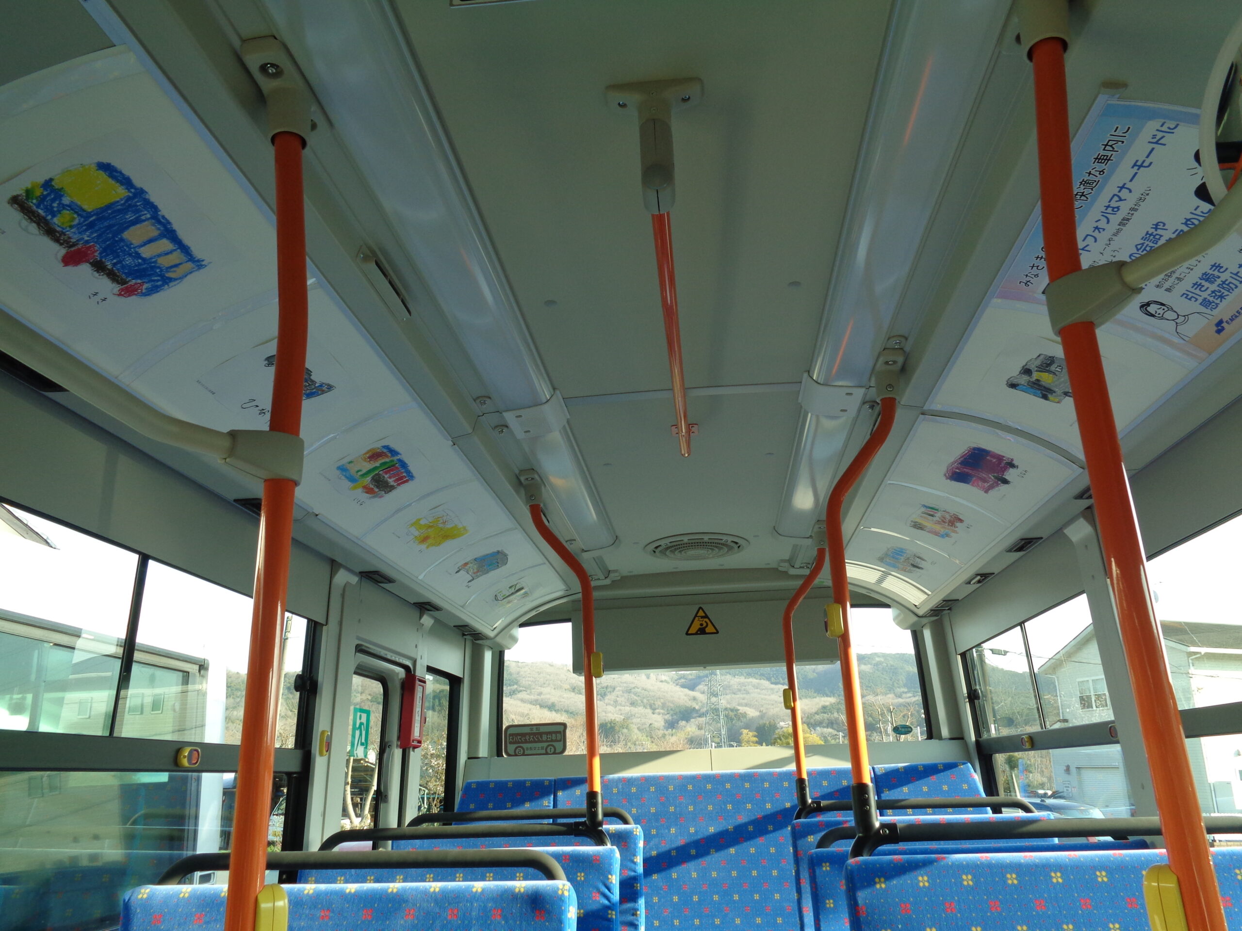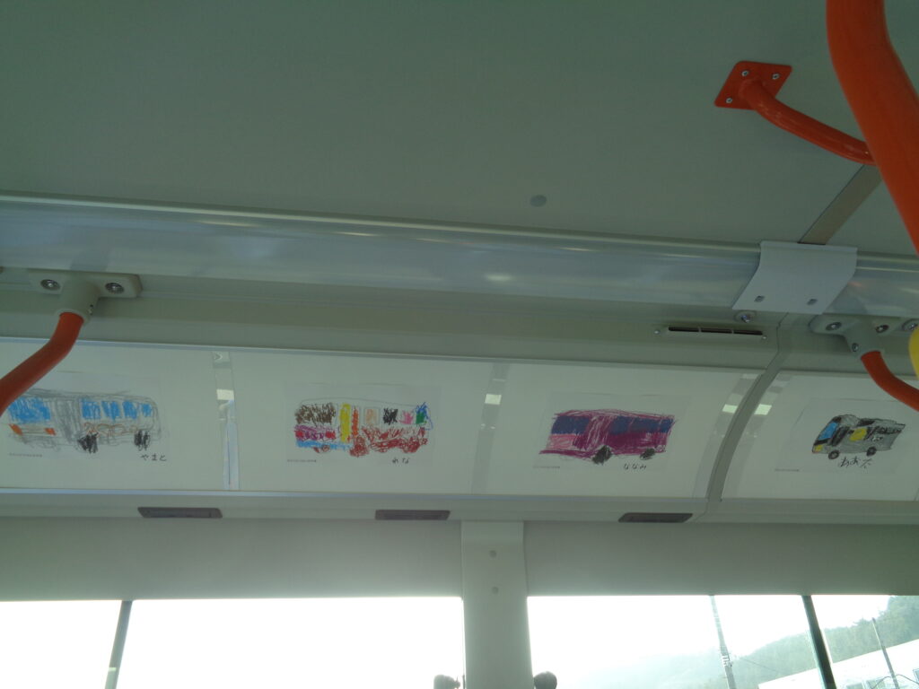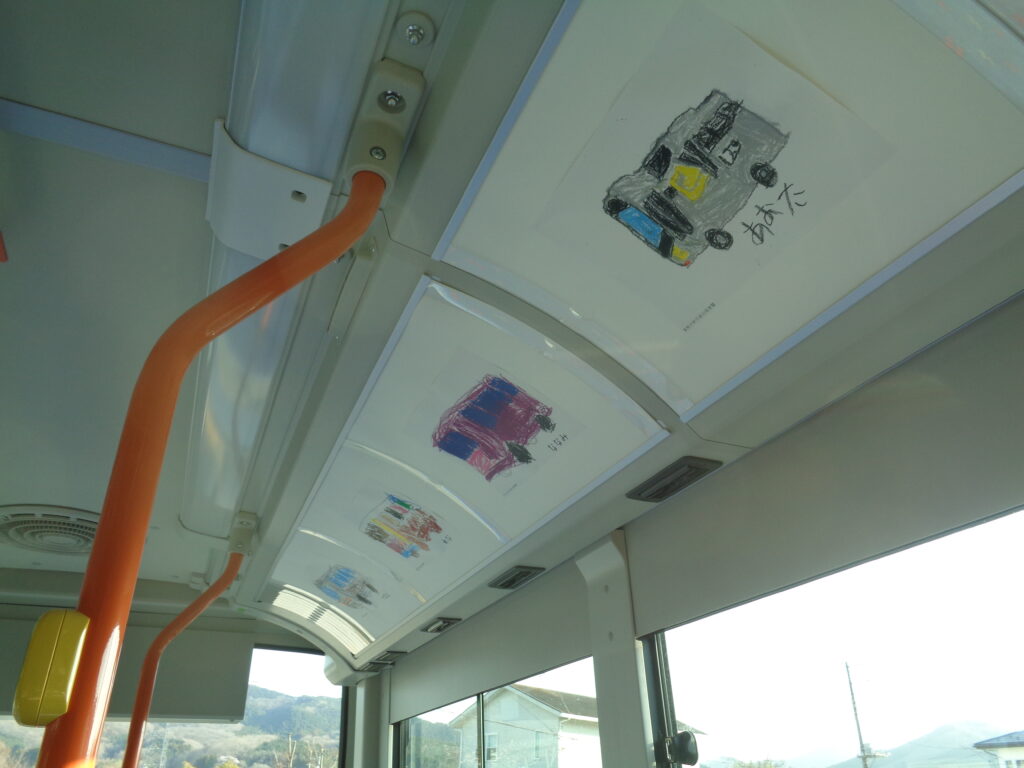 3月18日~4月17日まで、東秩父村路線バスの車内にて、地元・城山保育園の園児の皆さんが描いた「バスの絵」を展示しております。