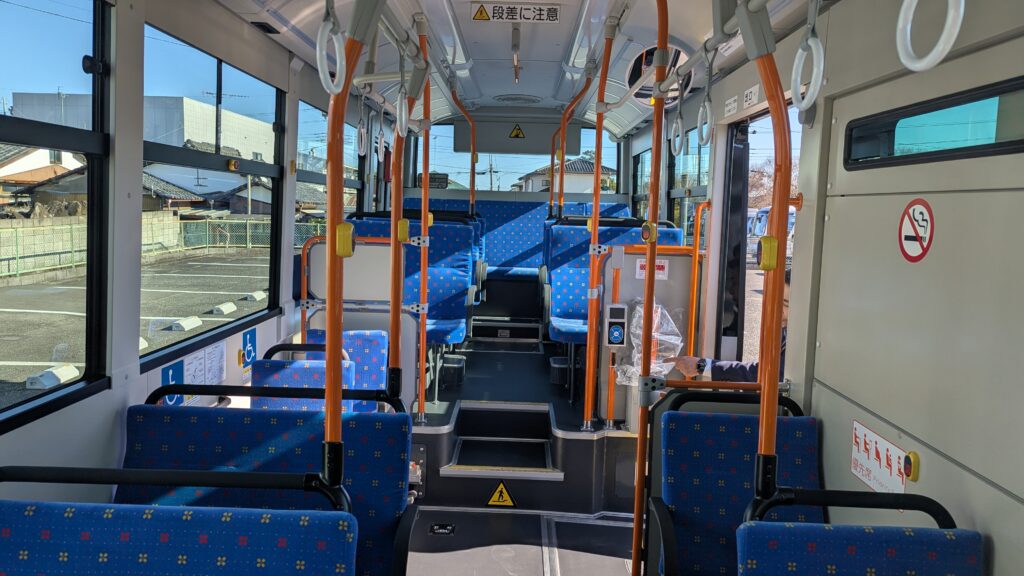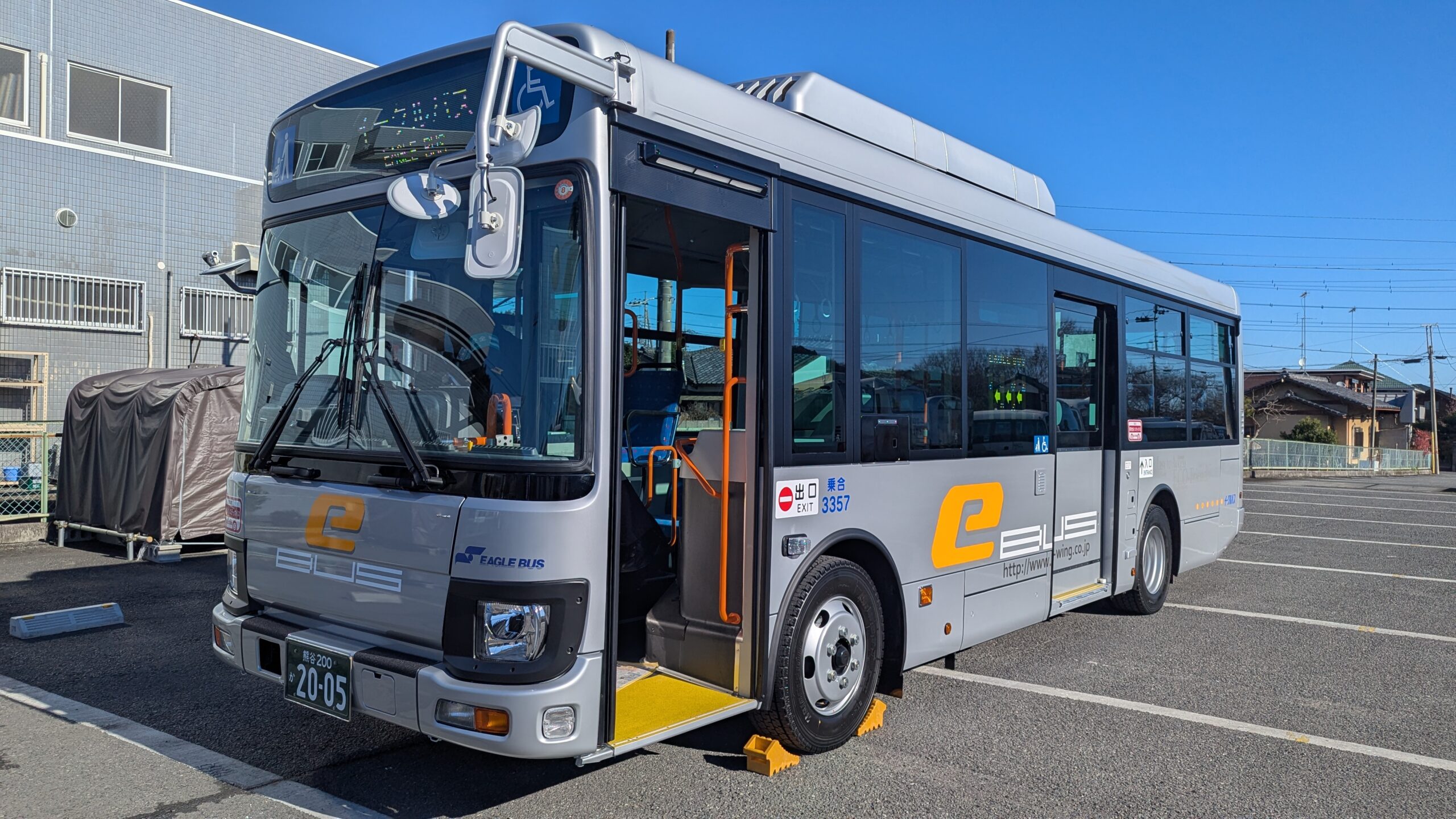新たに導入された車両は、いすゞエルガミオの中型路線バスです。